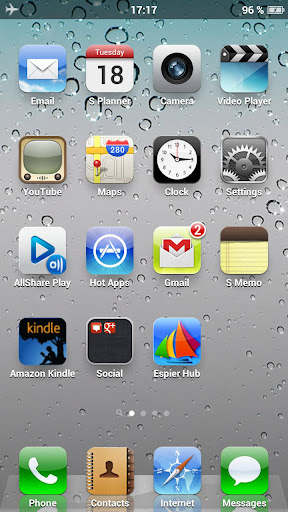 This is an iPhone style homescreen launcher.It actually does look like an iphone.The icons make it more precise and realistic iphone.It has got quite a few animations like the iPhone.It also replaces the status bar.(PAID FEATURE)